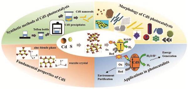 目前,解决环境污染和全球能源短缺的问题成为了当务之急。半导体光催化技术可以使太阳能转换成化学燃料,这项技术正在被广泛研究。在半导体催化剂领域,CdS的低带隙对于可见光的响应,对于质子的减少具有足够的带边电位,因此得到了关注。研究发现,CdS基催化剂具有优异的催化性能,因为它可以利用太阳能燃料发电,进而保护生态环境。本文总结了当前各种CdS及CdS基光催化剂的设计和合成的研究进展;CdS的物理和化学性能和相关的生长机制;CdS基光催化剂的应用。近日,电子科技大学 的张怀武 和向全军 (共同通讯) 等人,讨论了CdS及CdS基光催化剂的主要研究成果。其中,文章将材料的合成方法、形貌调控及不同形貌下的光催化性能,进行了对比分析。CdS基光催化剂可以催化产氢和降解CO2 ,减少环境污染,提供新的能源材料。这是因为CdS能够吸收可见光,促进光载流子的分离。因此,通过简单的方法合成CdS基光催化剂不仅仅对太阳能燃料发电有促进作用,也能够对其他光催化剂的研究提供指导。