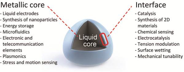 过渡族元素和锌族元素具有金属和液态的特点,因此这些元素及其合金具有许多优异的性能。含有这些元素的合金具有低的熔点,可以用作各领域的物理和化学材料合成。这些合金在新材料的合成方面具有重要应用。新材料往往具有很好的催化性能,也可以用于微流控芯片、柔性电子器件和医药方面。近日,皇家墨尔本理工学院 的T. Daeneke 和K. Kalantar-zadeh (通讯作者) 等人,重点概述了液态金属材料的基础研究进展,包括:液态金属的制备、表面官能团的获得和液态金属的化学特点。同时,探讨了液态金属的发展和应用。